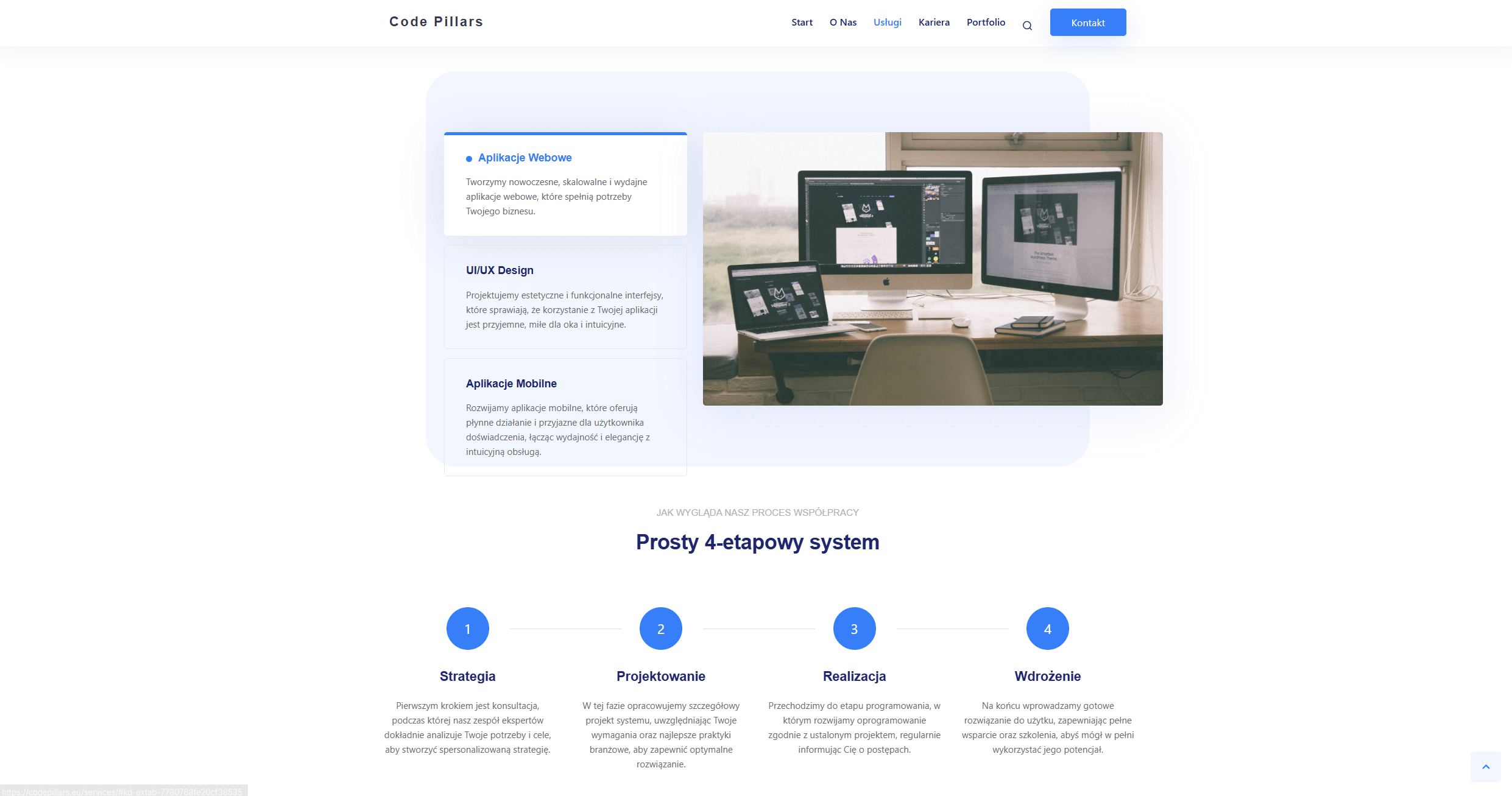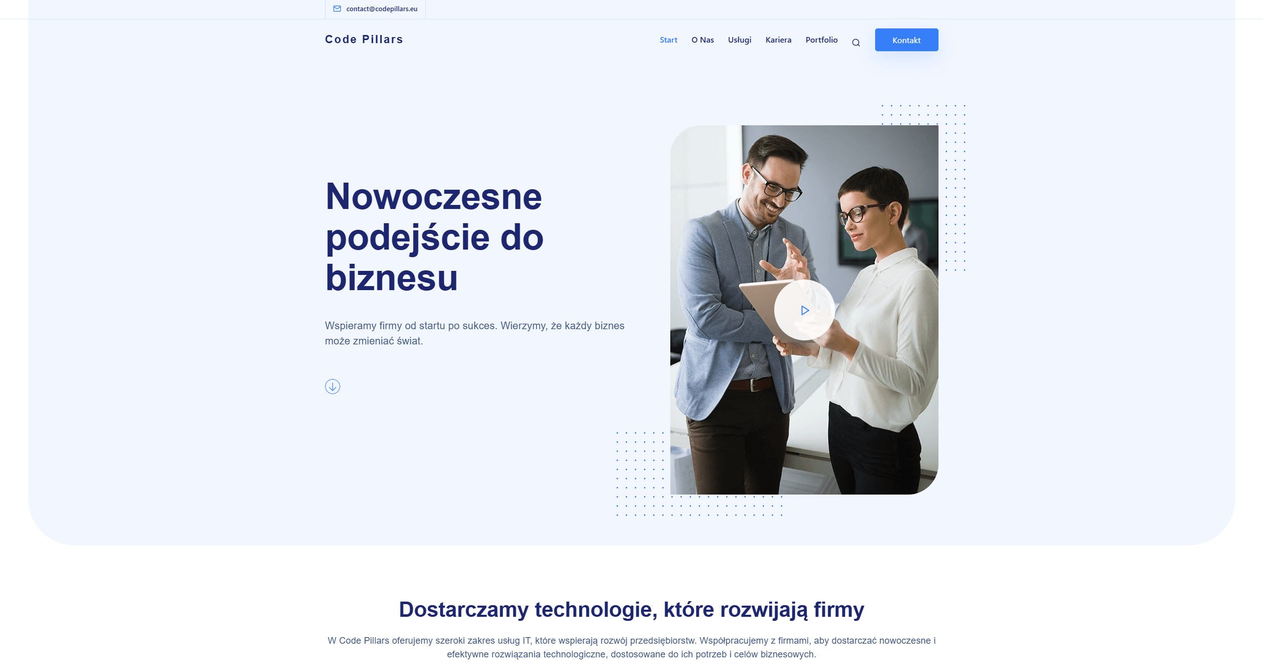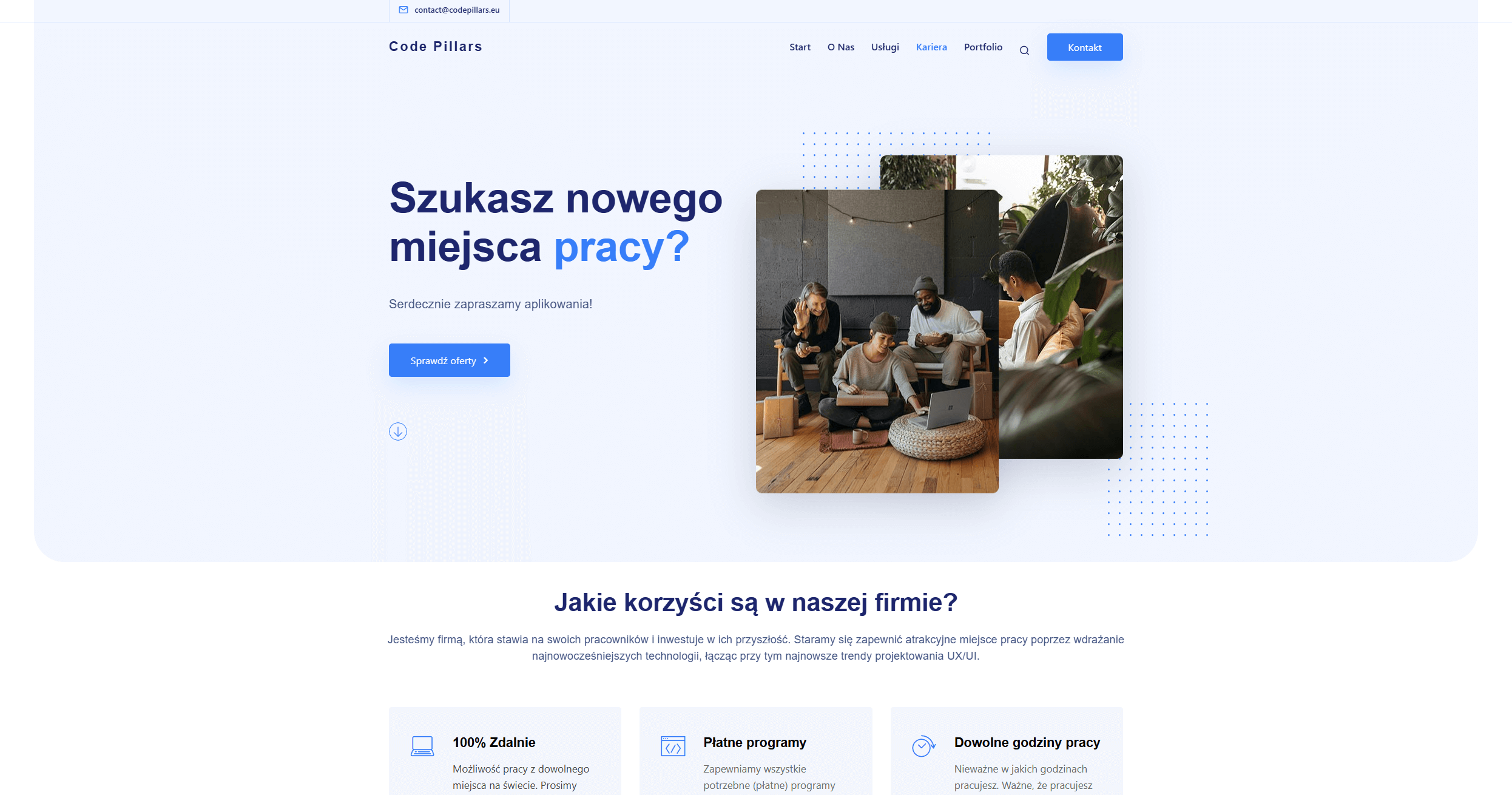 Code Pillars Strona internetowa startupu firmy IT Projekt Strona internetowa Klient Code Pillars Branża IT Usługi UX & UI DesignWordPress DevelopmentHTML, CSS, and PHP Development